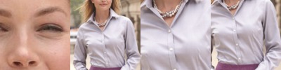 - Two pearlized buttons on adjustable cuff with button-through sleeve placket